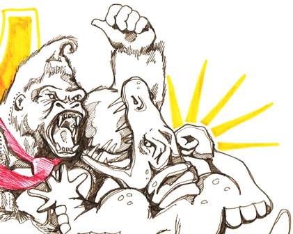 Anyway I thought I’d do him a wee drawing to inspire him in the last leg of his education and the first step into his career. Take him (and myself) back to the old days of sitting on cushions on the floor to get so close to the screen you could see the colours separate into RGB and the only sound under our held breaths was the relentless tapping of desperate thumbs. The days when money meant nothing more than the chime of disappointment, because really you were desperately hoping for a mushroom. The days when clouds were solid, vines were opportunities and barrels were terrifying. The days when bananas meant so much more than a good source of potassium and even the chesnuts were against you…Actually now that I think about it, that’s all pretty batshit mental.